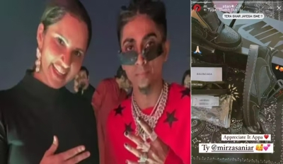 Now, Sania has gifted him a few expensive gifts worth Rs 1.21 lakh. He shared a picture of all the gifts given by Sania, including pair of Nike shoes worth Rs 91,000 and sunglasses worth Rs 30,000. Overall she gave him gifts worth Rs 1.21 lakh and the rapper thanked her.