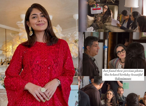 Mrunal took to her Instagram stories where she shared a collage from the shoot of their film. It had the Indian actress reading a script while Moore could be seen listening intently to the director.