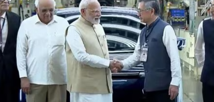 India has inaugurated a major green mobility initiative at Hansalpur, Gujarat, marking the start of electric vehicle exports to 100 countries and the launch of hybrid battery electrode manufacturing. The event, attended by Prime Minister Narendra Modi, Suzuki Motor Corporation President Toshihiro Suzuki, and Japanese Ambassador Keiichi Ono, celebrates a new phase in India’s Make in India journey and deepens the Bharat-Japan industrial partnership.