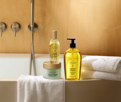 Accompanying the collection is a refreshed packaging design inspired by the delicate curve of an inverted Almond, reflecting softness, fluidity and sensoriality. The signature black cap pays homage to L’Occitane’s iconic apothecary heritage and is engraved with the Maison’s monogram, a subtle link between tradition and modern refinement.