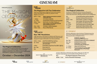 The magical year-end celebrations begin in October and run through December across five destinations that make up the ONESIAM experiences: Siam Center, Siam Discovery, Siam Paragon, ICONSIAM, and Siam Premium Outlets Bangkok.