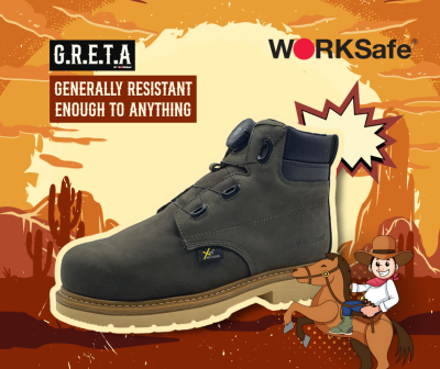 As with all great WORKSafe products, Greta is brought to life through SafetySam’s original comic series. This time, Sam is thrust into a Wild West multiverse—a tribute to the rugged origins of leather boots. There, he combines old-world techniques with modern safety innovations, mirroring the real-world development process behind Greta.