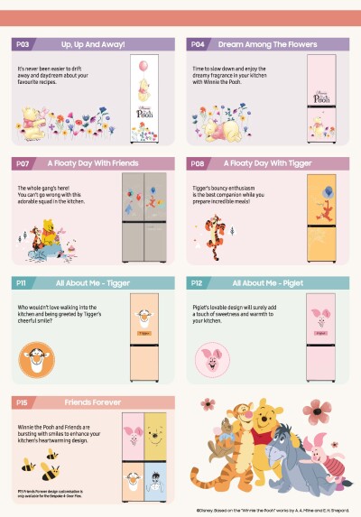 SINGAPORE – Media OutReach Newswire – 7 December 2023 – Some of your childhood favourites are here to bring a touch of whimsy, enchantment, and creativity to your kitchen décor! Samsung Singapore announces the Bespoke Winnie the Pooh Collection, which comes in 15 delightful designs, featuring beloved characters to instantly brighten your home and inspire the family’s imagination.