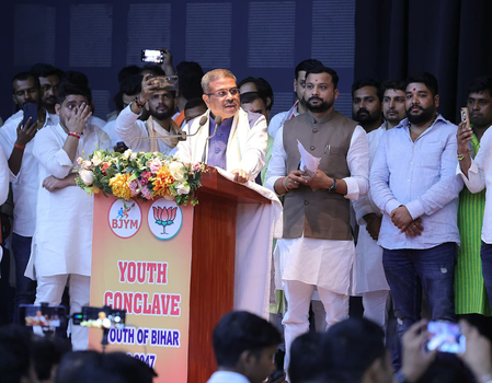 Patna, Aug 26 (IANS) The “Youth of Bihar 2047 Student Conclave” was organised at Gyan Bhawan in Patna on Tuesday, where Union Education Minister Dharmendra Pradhan said that India is on the path to becoming the leading country in the world, but emphasised that Bihar must play a leading role in this journey.